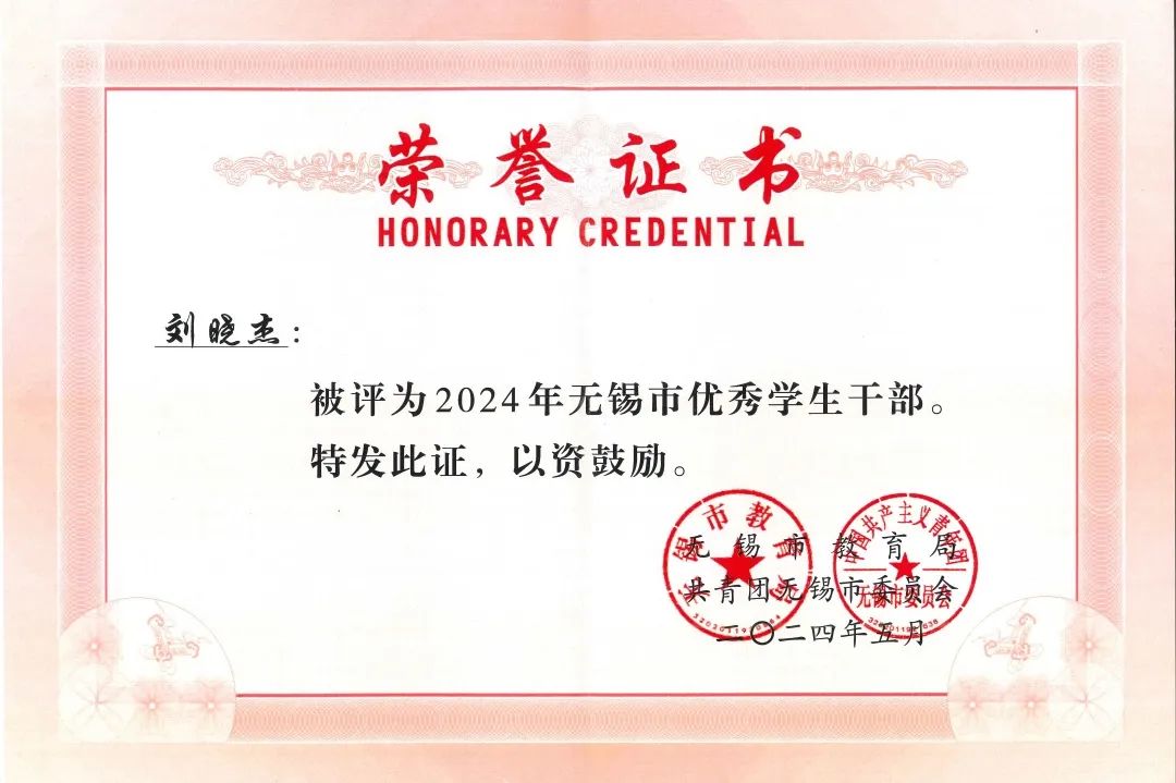 年度人物。他积极投身科研竞赛,以团队负责人的身份主持一项国家级大创,在此期间,参与发表三篇SCI论文,并以第一作者在《Surfaces and Interfaces》期刊上发表一篇论文,参与申请三项中国发明专利,两项已进入实质审查,获得8项省级及以上科创竞赛奖项,该项目也以优秀结题;他关心同学,对待学生工作一丝不苟,先后获评“无锡市优秀学生干部”等荣誉称号;积极投身志愿活动,先后获评“至善学院尚行之星”、“无锡马拉松优秀志愿者”等荣誉称号。