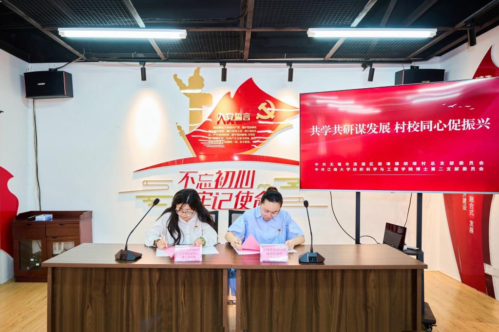 博士第二党支部与胡埭村党总支进行结对共建,双方代表共同签署《党建共建协议书》,围绕组织共建、人才共育、发展共促达成合作机制。随后,校友黄夏妍分享了她在基层工作中的经验与心得体会,深入浅出地讲述了如何将所学专业知识与基层实际需求相结合,积极投身乡村振兴、基层治理和社会服务,展现了新时代青年党员扎根基层、服务人民的责任担当。2024年纺织援疆团团长陈顺分享了赴新疆社会实践的宝贵经历与体会,她以鲜活的案例和感人的故事,生动展现了援疆社会实践的感悟,激励现场党员青年继承和发扬“奉献、担当、实干”的精神。